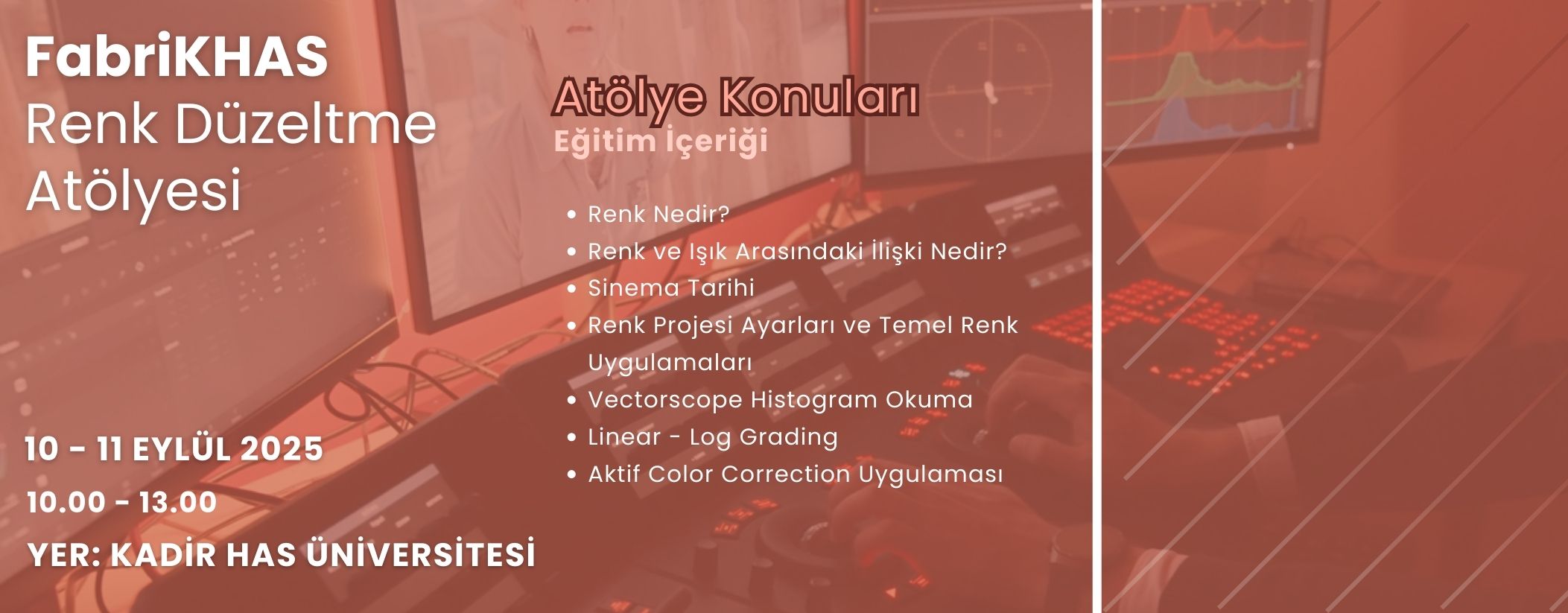 Color Correction Training will be held at Kadir Has University FabriKHAS on Wednesday, September 10th and Thursday, September 11th. The training will take place between 10:00 am and 1:00 pm.